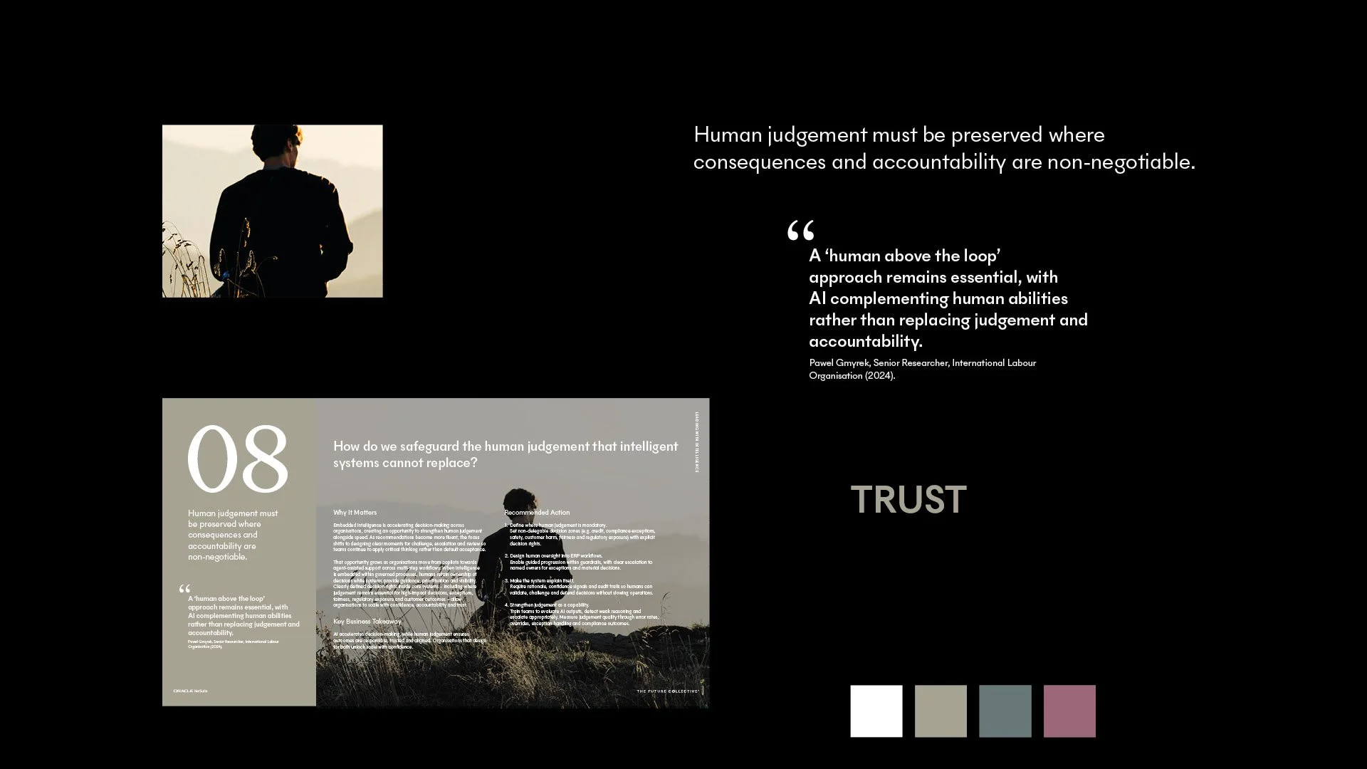 Our role was to move the conversation beyond tools and capability, and instead frame intelligence as an operating model challenge. Through four connected forces: Technology, Trust, Truth and Togetherness we developed a futures-led thought leadership playbook that frames intelligence as an operating model evolution, not a technology rollout.